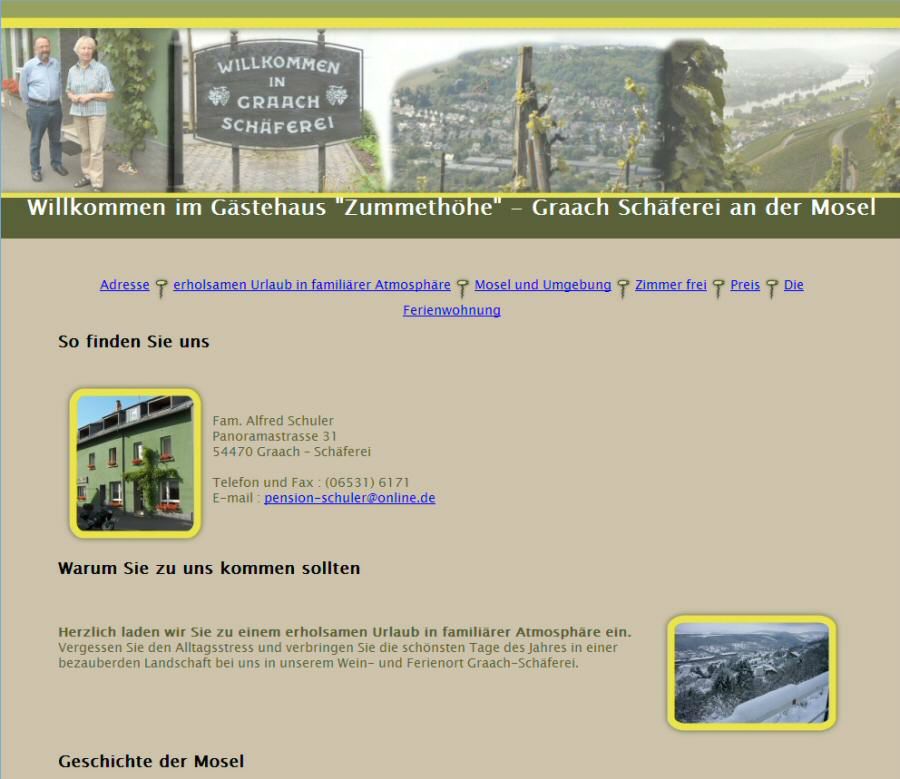 De familie Schuler baat al jaar en dag een gästehaus uit aan de mooie Moezel in Duitsland. Het huis is gelegen op een flank met schitterend uitzicht op de Moezel en het bekende Bernkastel-Kues.